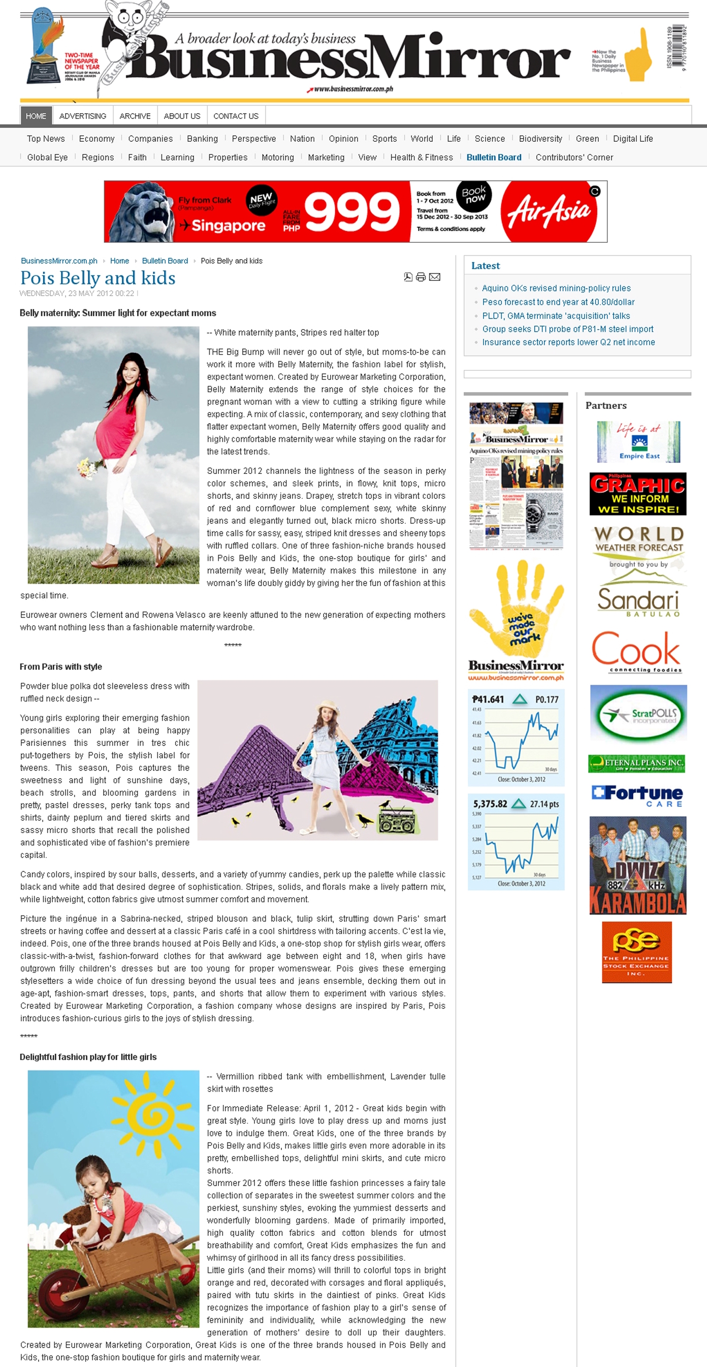 Centaur Marketing worked with Eurowear Marketing Corporation to promote its brand, Pois Belly & Kids 2012 S/S collection.